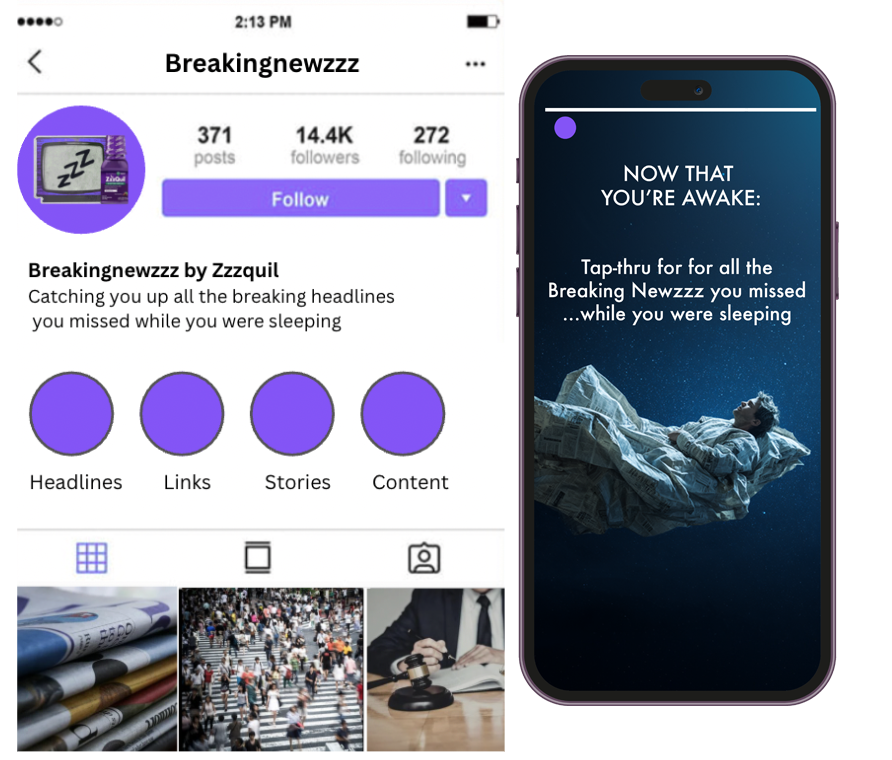 Instead of the news making you nocturnal, Zzzquil is here to catch you up on the headlines you missed while you caught some shut-eye, so you can sleep soundly, stress free. Just be sure to check it when you wake up.