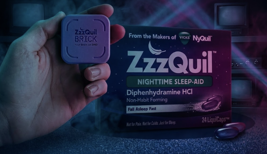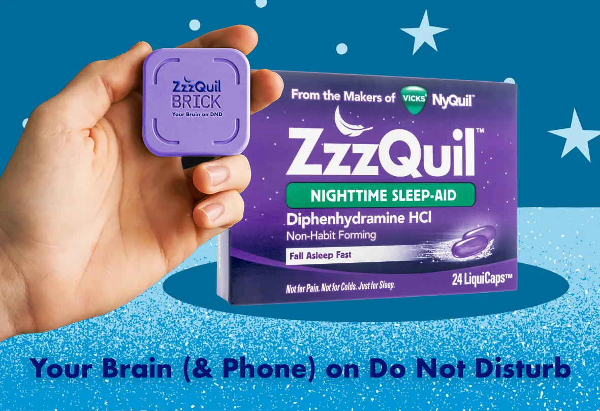ZzzQuil will partner with Brick, a device that physically blocks apps on your phone, so you can block out the noise at night. A voucher for a free box of ZzzQuil capsules will be included.