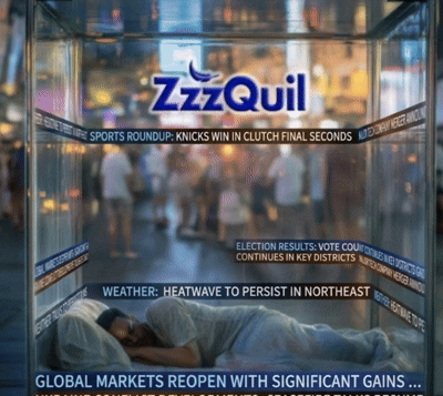 ZzzQuil will stage a sleep stunt outside major news outlets, in majorly busy areas, with breaking headlines playing onto a clear box. Inside, one lucky sleeper who took ZzzQuil rests peacefully, able to put the news, their brain, and the world on Do Not Disturb.
